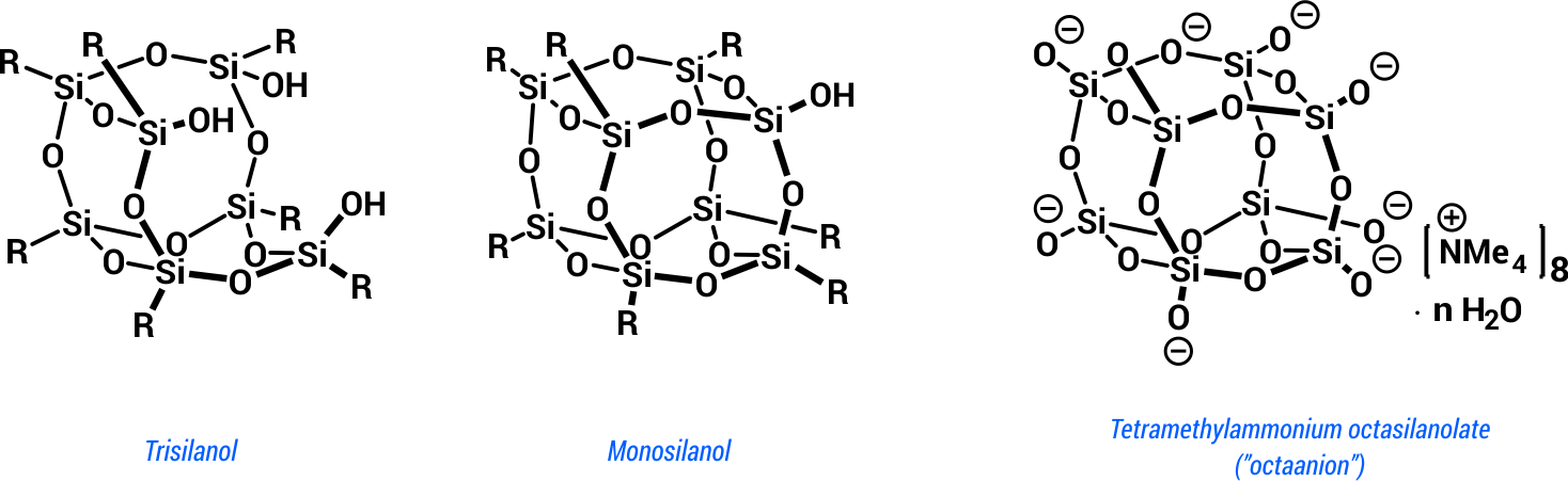 Silsesquioxane silanols or silanolates may form incompletely condensed cages as well as closed structures with the reactive silanol grups number ranging from one to eight (Scheme 3).